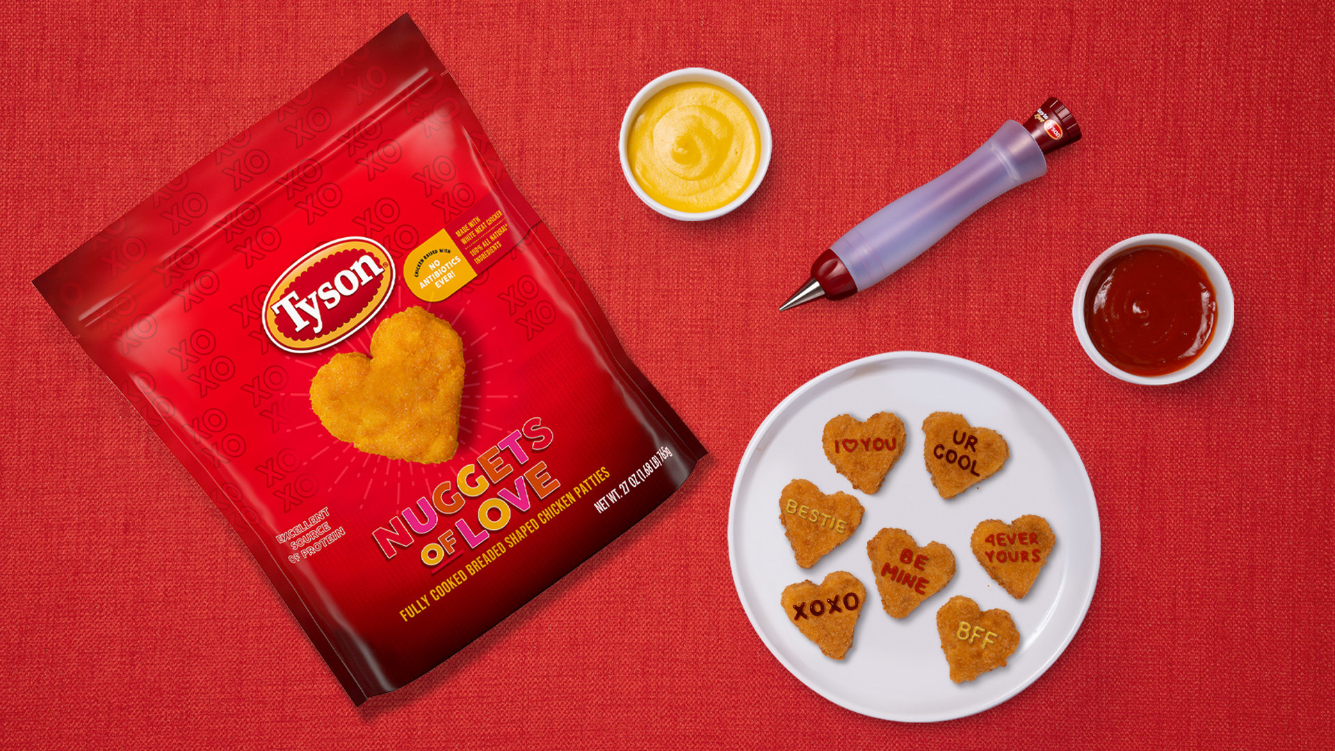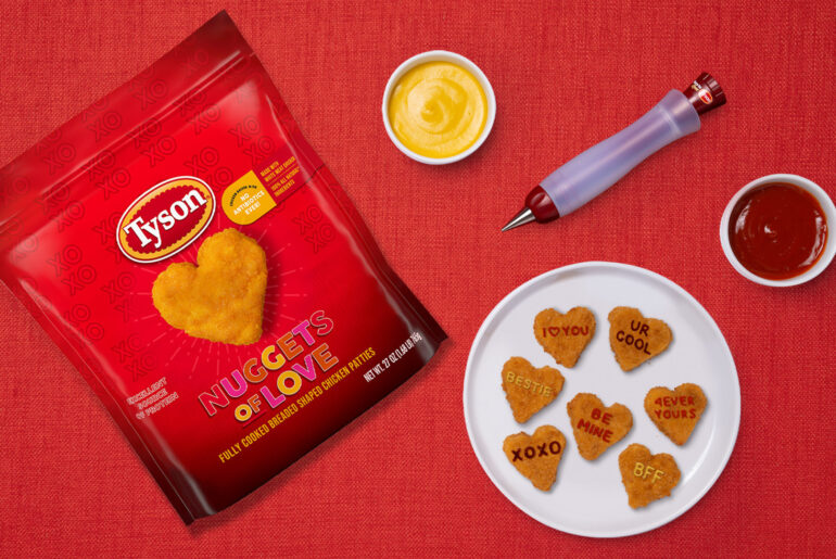 This Valentine’s Day on February 14, Tyson Foods is inviting Americans to show their love to a sweetheart, friend or family member with the brand’s fully cooked heart-shaped breaded chicken nuggets. Made with 100% white meat chicken raised with no antibiotics, Tyson Nuggets of Love are now available for a limited time at select supermarkets and other retail stores nationwide.