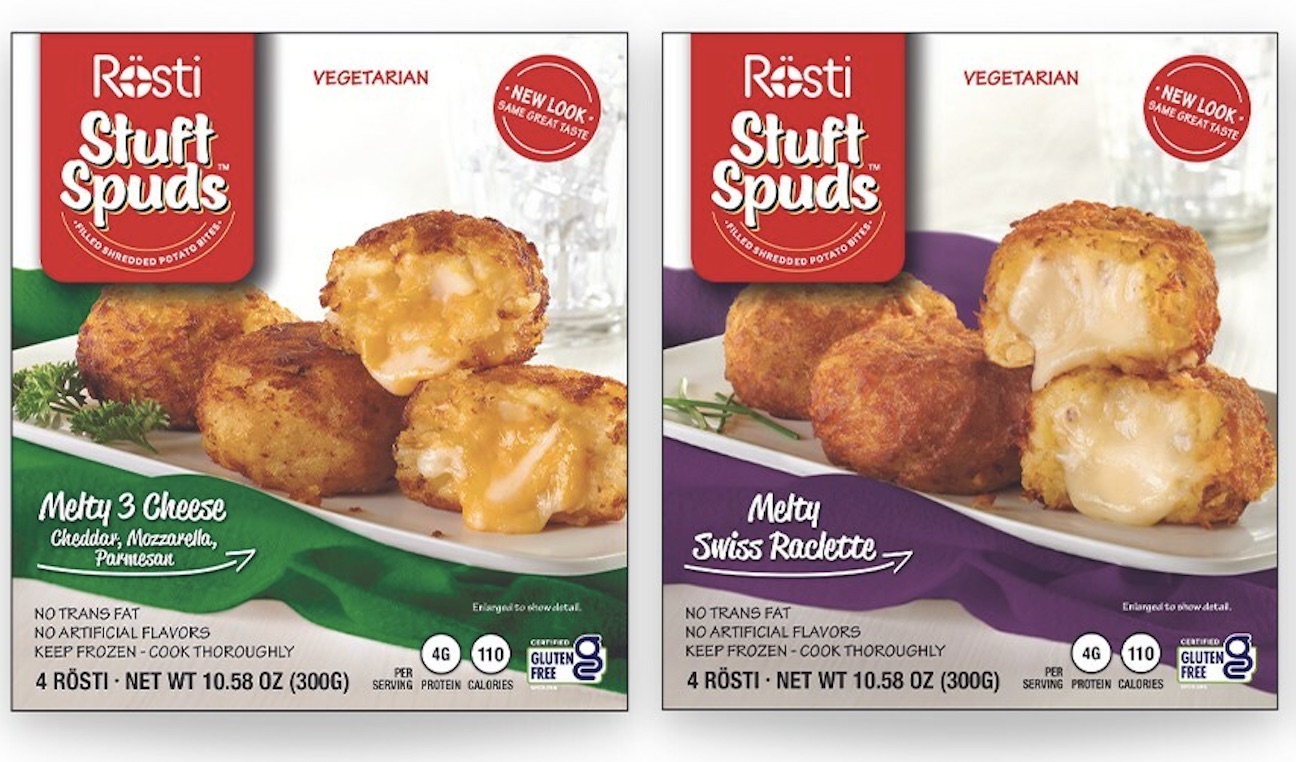 Rösti Stuft Spuds products can be found at over 2,000 retail outlets throughout the USA, including Whole Foods Markets nationally, Target, Natural Grocers, Fresh Thyme, Central Market and several Safeway/Albertsons divisions. The vegetarian, gluten-free line is distributed in 300g packs containing four filled-shredded potato bites.