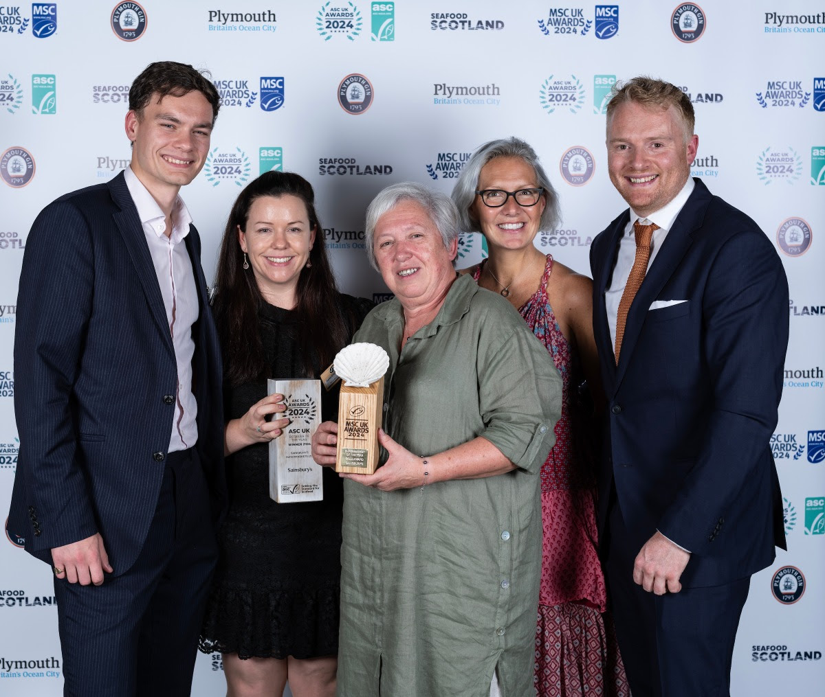 “These awards are a huge credit to the team because we talk about how we can source seafood more sustainably every single day. It means what we’re doing is genuinely being noticed and is meaningful. When you win something twice it gives you confidence that you are on the right path and makes us even hungrier to win again as we have huge plans for fish,” said Dave Parker, head of fisheries and aquaculture at Sainsbury’s (pictured in above photo at far right with other members of the retail team, left to right: James Parton, Karen O’Connor, Alyson Anderson and Fran Setterfield).