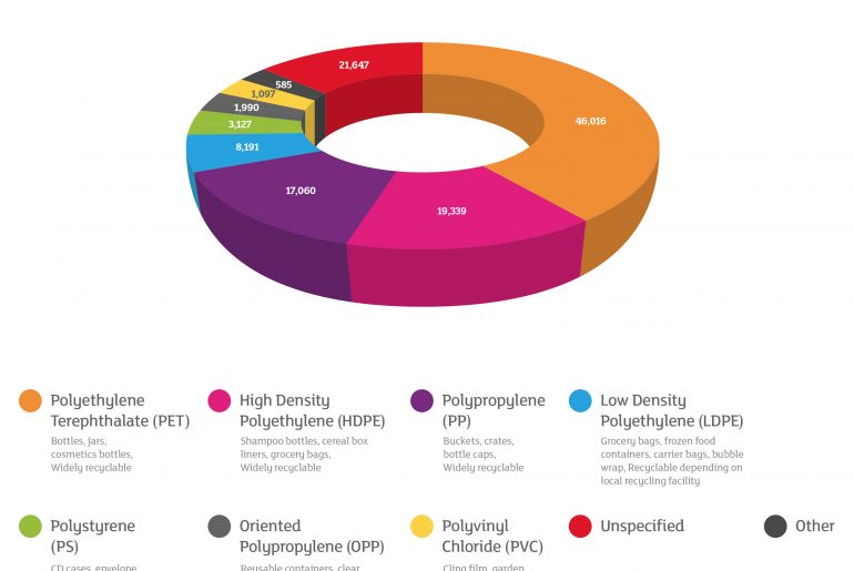 It should be pointed out that Low Density Polyethylene (LDPE) polymer packaging used by the frozen food industry accounts for a very small percentage in the breakdown of plastic packaging by polymer type. The big percentages (see pie chart above) are attributed to widely recyclable Polyethylene Terephthalate, or PET bottles, jars, and cosmetic bottles; High Density Polyethylene, or HDPE shampoo bottles, cereal box liners and grocery bags); and Polypropylene, or PP buckets, crates and bottle caps.