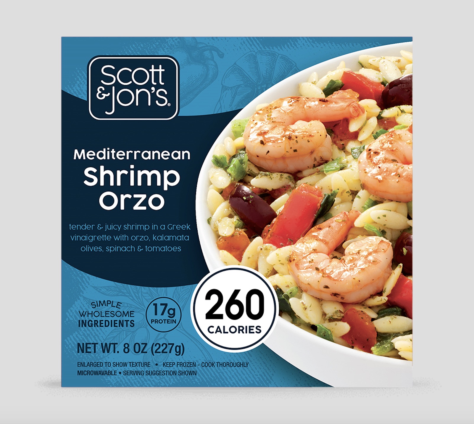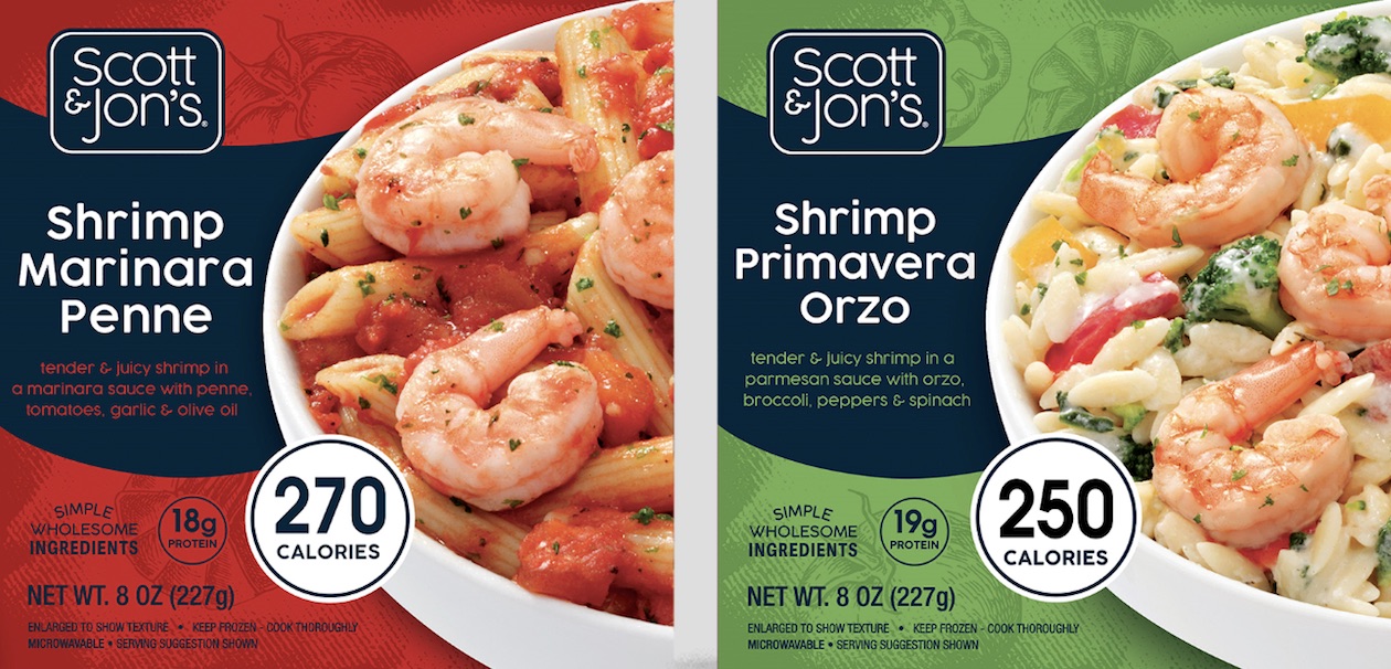 Scott & Jon’s has long offered convenient and tasty low-calorie bowls that are packed with protein. Product development of recipes featuring wholesome ingredients is ongoing. Among new offerings recently introduced are Mediterranean Shrimp Orzo, Shrimp Marinara Penne, Shrimp Primavera Orzo, Honey Garlic Shrimp Rice Bowl, and a grain-free Shrimp & Vegetable Stir-Fry dish accentuated with broccoli florets, edamame, carrots, peppers and sweet chili sauce.