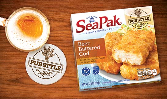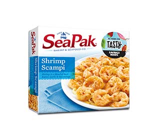 The redesigned packaging now hitting supermarket and other retail store shelves across the USA includes Popcorn Shrimp and Shrimp Scampi, as well as new products such as Pub Style Beer Battered Cod and Pub Style Beer Battered Crab Poppers, in addition to well as items in the SeaPak Selections product line such as Creamy Garlic Shrimp and Lemon Pepper Shrimp.