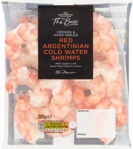 All the major supermarket chains in the United Kingdom stock a range of plain, warm and coldwater, shell-on and shell-off prawns, at varying price points. Although not all sell marinated products, they do offer a range of value-added products, with nearly all stocking coated and pastry covered variants. Morrison’s, for example, features Argentinian Red Cold Water Prawns as part of The Best range (£5).