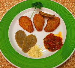 Cream and Onion Potato Bites, also in the Tapas category, were a big hit at the show. Mex-Al’s recipe, fired up with bits of jalapeños peppers, features an outside layer of soft potato dough covered with a thin layer of crunchy breading.