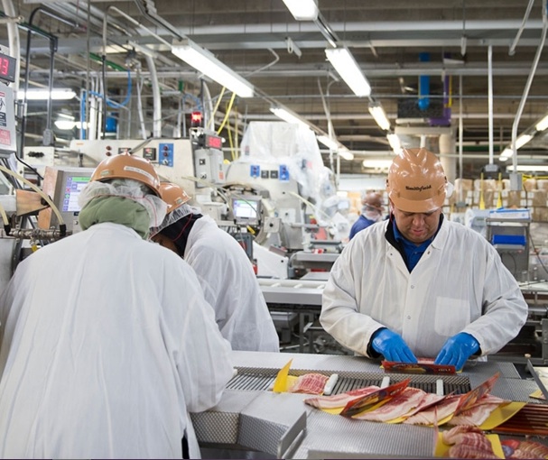 Among retail SKUs packed at the Sioux Falls facility are ready-to-cook bacon, deli meats, hot dogs and smoked hams. When fully operational, it supplies 130 million servings of food per week.