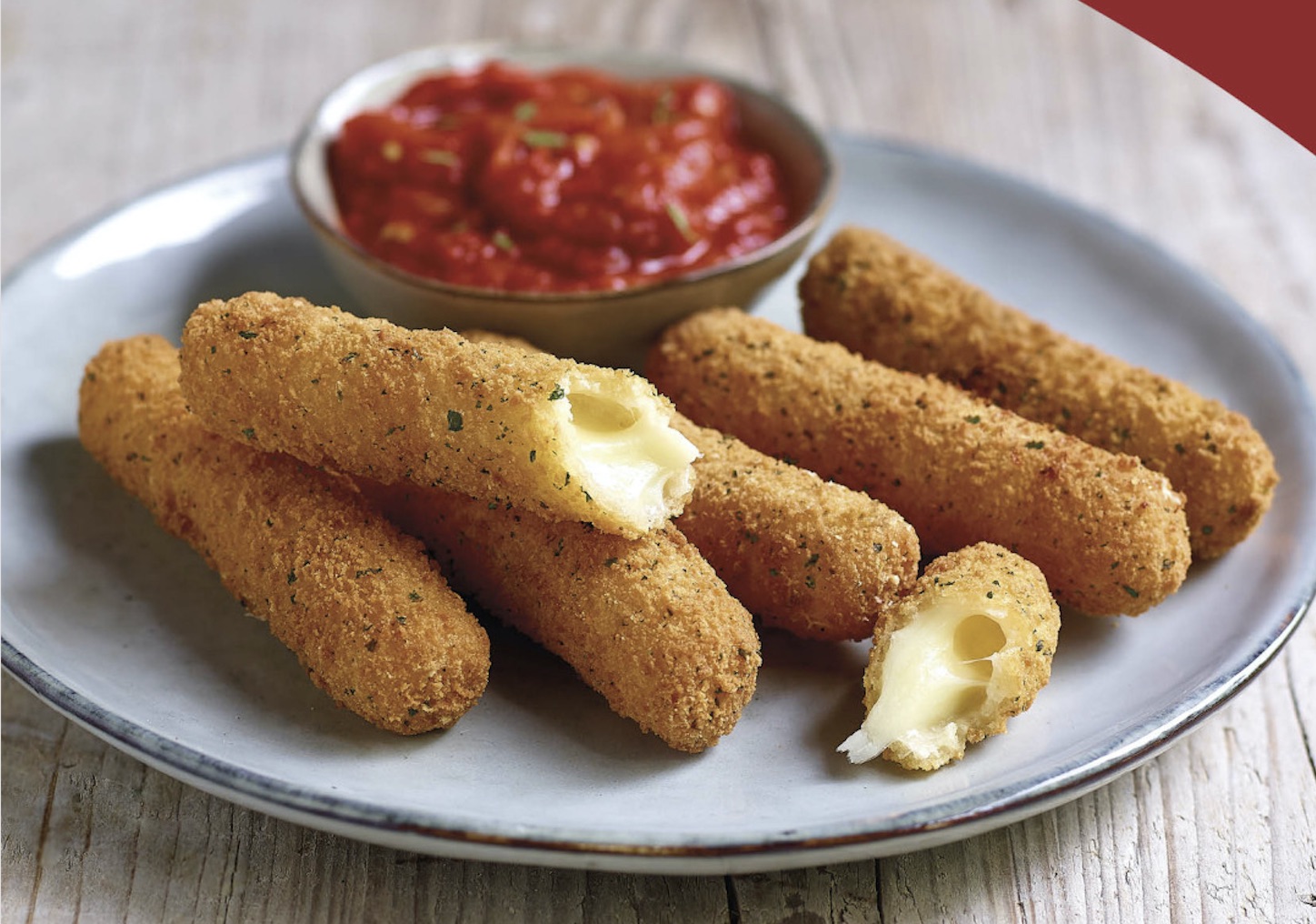 Weighing in at plus or minus 30 grams each, Lutosa’s lightly seasoned Mozzarella Sticks (pictured below) are presented as “an indispensable addition to tapas plates” as well as “an appetizer to share with friends or as a gourmet starter.”