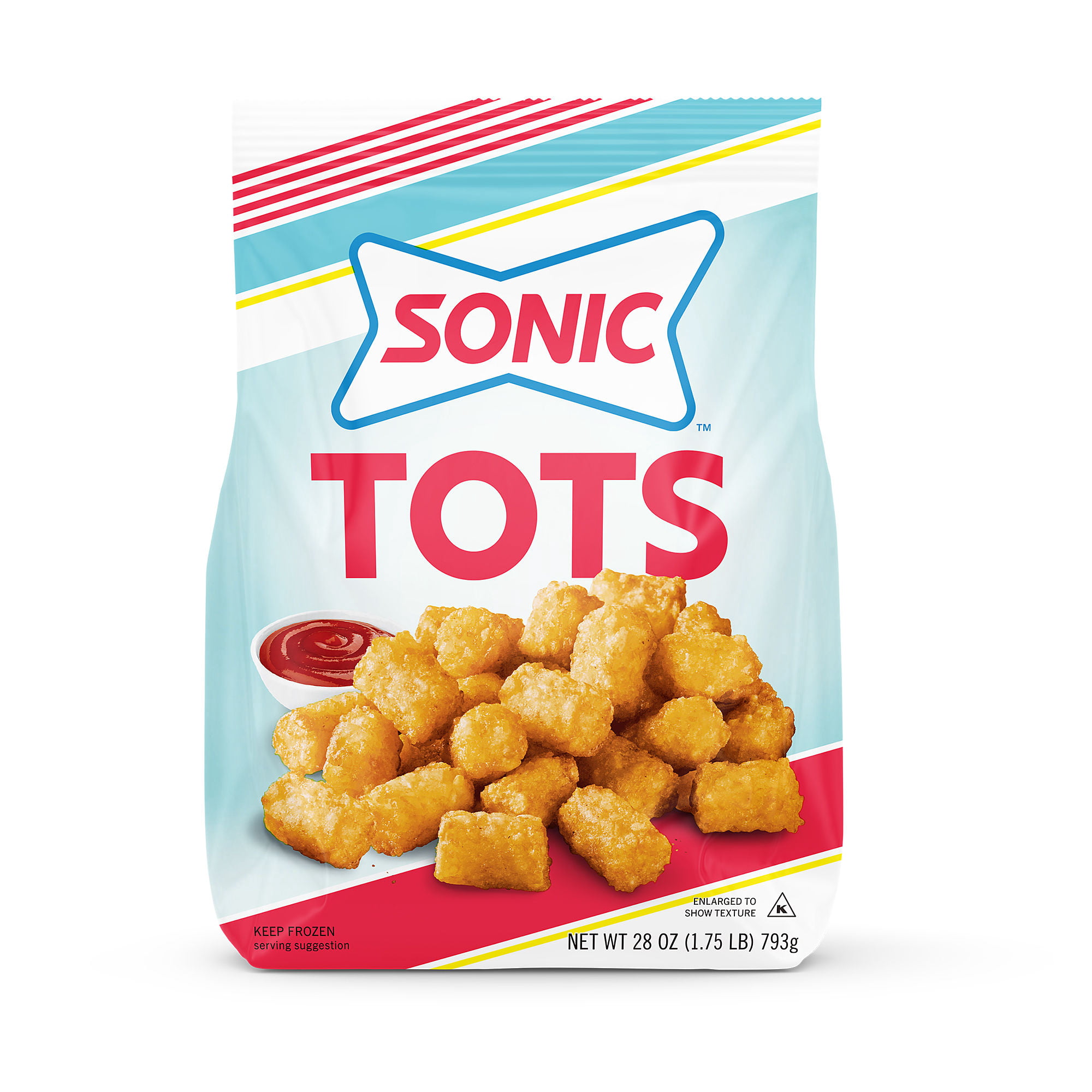 Sonic Tots, the crispy potato side dish long on menus at Sonic Drive-In fast food restaurants in the United States, is now for sale in the frozen food section of more than 4,000 Walmart SuperCenters nationwide. Priced at $4.98, the lightly salted contents of the 28-ounce (793-gram) packages are ready to eat after 20-25 minutes of oven preparation or 10 minutes in an air fryer.