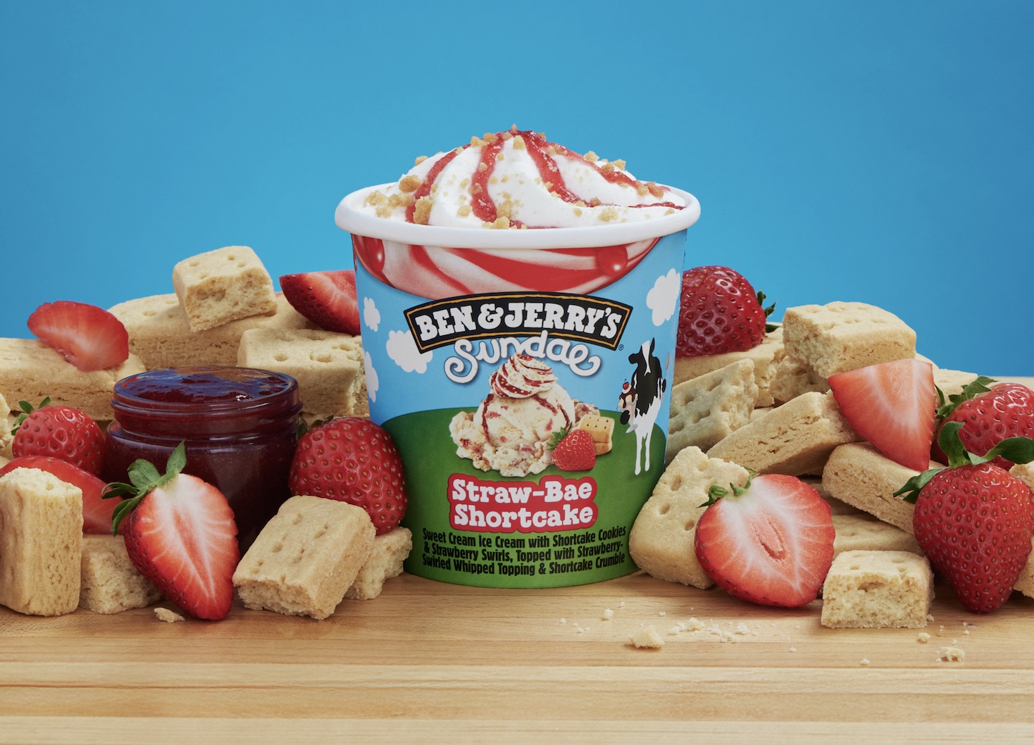 • Straw-Bae Shortcake – Sweet cream ice cream with shortcake cookies and strawberry swirls, featuring strawberry-swirled whipped topping and shortcake crumble.