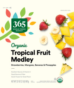• Whole Foods: 365 Organic Tropical Fruit Medley (34,578 cases containing 32-ounce plastic bags), 365 Organic Pineapple Chunks (14,946 cases), 365 Pineapple Chunks (8,049 cases), 365 Organic Whole Strawberries (13,017 cases), 365 Organic Slice Strawberries and Bananas (3,691 cases), and 365 Organic Blackberries (2,181 cases) distributed to select stores throughout the United States from November 1, 2022 to June 21, 2023.