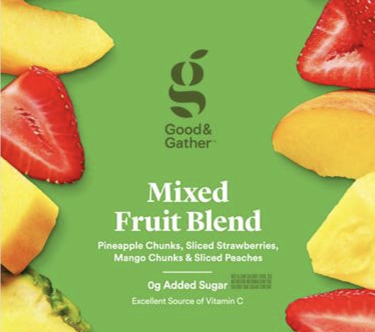 • Target: 3,961 cases of 32-ounce plastic bags of Good & Gather Organic Cherries and Berries Fruit Blend, Good & Gather Dark Sweet Whole Pitted Cherries (1,515 cases), Good & Gather Mango Strawberry Blend (238 cases), Good & Gather Mixed Fruit Blend (8,178 cases), Good & Gather Mango Chunks (871 cases), Good & Gather Blueberries (5,344 cases), and Good & Gather Triple Berry Blend (6,034 cases) distributed nationwide from October 14, 2022 to May 22, 2023.