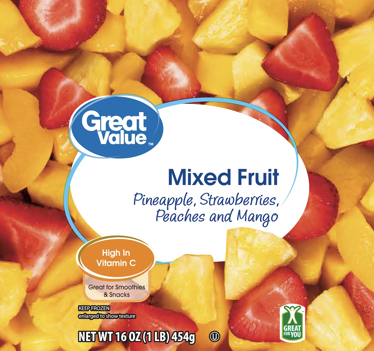 • Walmart: Great Value Mixed Fruit (70,360 cases of 16-ounce plastic bags), Great Value Dark Sweet Cherries (3,305 cases), and Great Value Mango Chunks (8,569 cases) sold at stores in Arizona, Arkansas, Colorado, Washington DC, Iowa, Idaho, Illinois, Indiana, Kansas, Kentucky, Louisiana, Maryland, Minnesota, Missouri, Montana, North Dakota, Nebraska, New Mexico, Nevada, Ohio, Oklahoma, Oregon, Pennsylvania, South Dakota, Texas, Utah, Virginia, West Virginia and Wyoming.