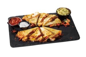 Buffalo Shrimp Quesadilla. Stuffed with buffalo shrimp, this quesadilla packs a punch. Grilled shrimp is tossed in buffalo sauce and placed atop a heaping layer of a classic mixed cheese blend – all between two flour tortillas and griddled to melty cheesy perfection. It comes with a side of rice and bleu cheese dressing.