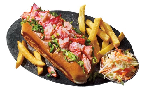 Lobster Roll. Creamy lobster salad, with celery and crisp lettuce on a classic grilled roll. It’s served with french fries and coleslaw, as pictured above.