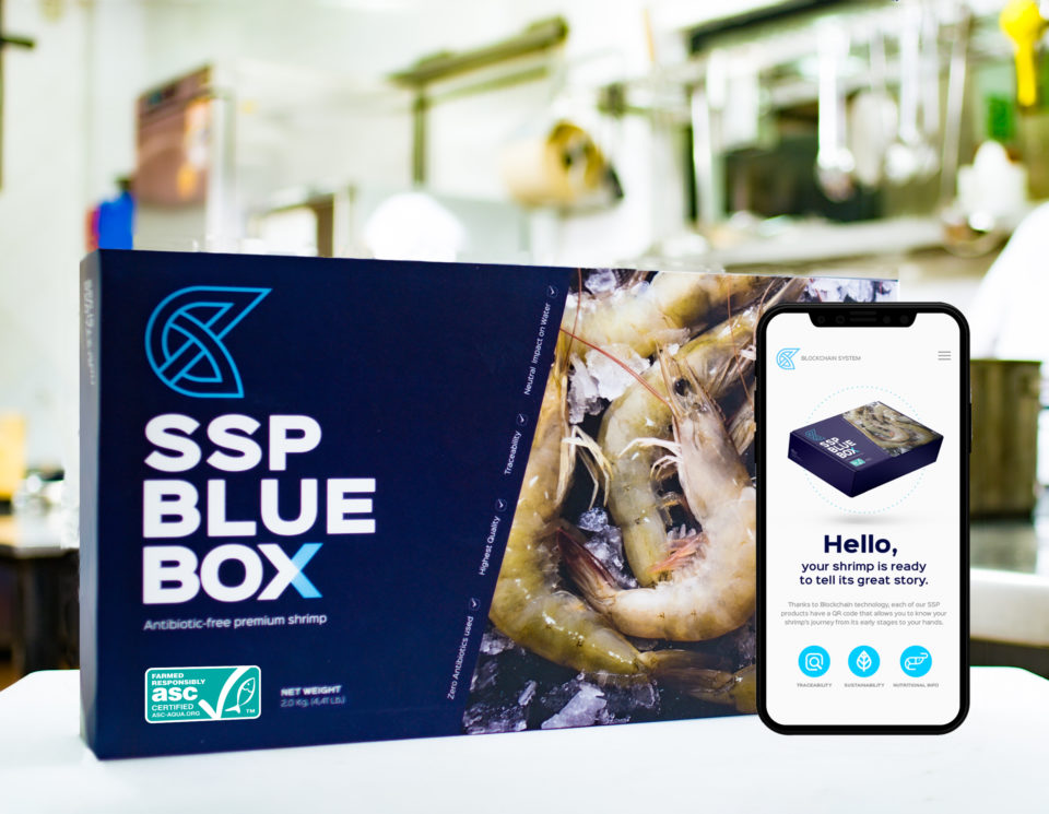 Each package of SSP Blue Box shrimp is stamped with a QR code that consumers can scan and in matter of seconds get to know where, when, who, and how their shrimp was farmed and processed, and trace it in every stage so that they can trust they are buying a premium quality and a safe product.