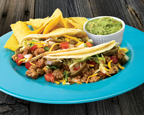The Beyond Meat Taco features Beyond Beef Feisty Crumbles sautéed with medium chipotle salsa, diced onions and minced serrano peppers, topped with shredded cheddar and Monterey jack cheese, shredded lettuce, pico de gallo and jalapeños served on warm corn tortillas. The faux meat protein is also available for order in other popular menu items such as burritos, enchiladas, taco salads or quesadillas.