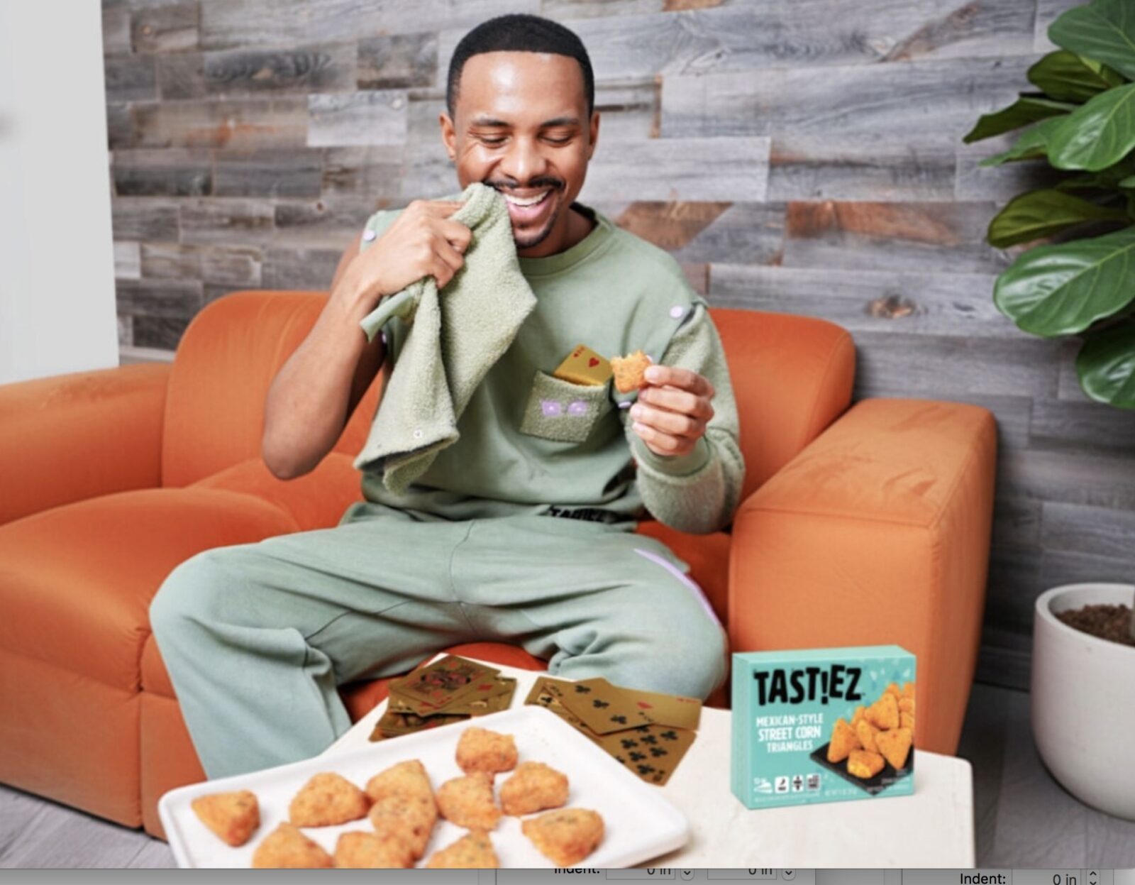 With a blend of coziness, function and playful style, the loungewear features tear-away napkin sleeves with snap buttons, a built-in pocket for dice, cards or a score pad, and a “Here for the Snacks” back graphic. The clothing comes with snack-inspired playing cards and dice in addition to a variety of TAST!EZ appetizers.
