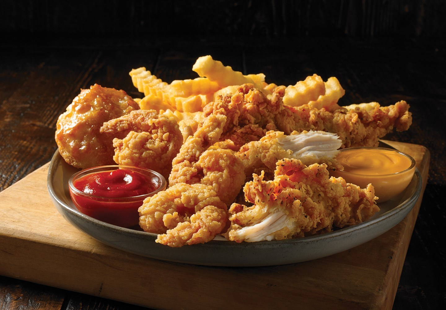 The Texas Tenders ‘n Butterfly Shrimp meal pairs two of Church’s juicy all white meat Texas Tenders with four large butterfly shrimp. Priced at $6, the meal is served with regular fries and a honey-butter biscuit.