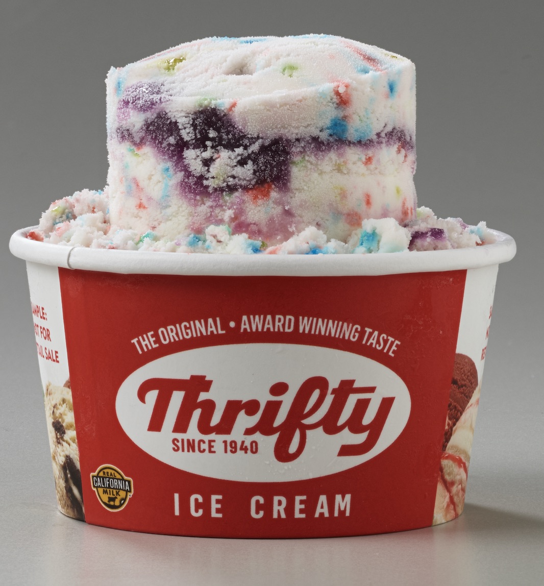 El Monte, California-based Thrifty Ice Cream has launched a Birthday Cake ice cream flavor inspired by Chuck E. Cheese, the family entertainment center and popuar destination for birthday parties and other celebrations.