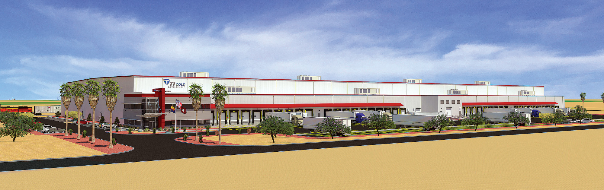 The first Ti Cold Development project utilizing BGO’s pre-committed capital is currently being designed for construction in Phoenix, Arizona. This state-of-the-art refrigerated warehouse (see rendering above) will boast approximately 177 million cubic feet of storage space, nearly 40,000 pallet positions, a 60-foot-deep refrigerated dock, a 40-foot-deep refrigerated rail dock and -20 to 60 degrees Fahrenheit, and fully convertible refrigerated/frozen space.