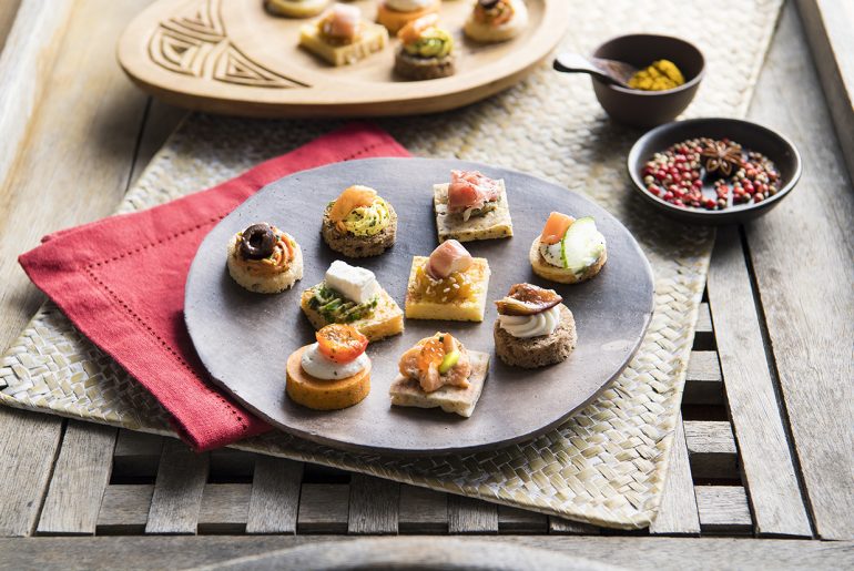Mediterranean Canapés Selection boxes contain 63 pieces – seven of each of the nine different flavors. For maximum convenience, foodservice operators are advised to remove frozen canapés from the box and arrange them on a platter, stand or serving tray. Leave for four hours in the refrigerator to defrost, plus 30 minutes at room temperature before serving.