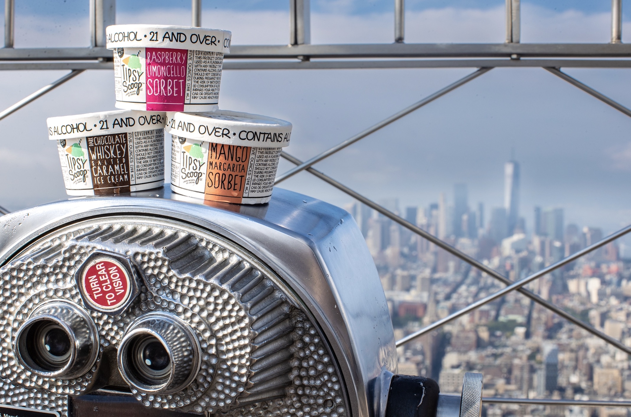 Having reached dizzying heights in marketing, the Tipsy Scoop liquor-infused ice cream and sorbet company will be serving its spiked sweet treats on the 86th Floor Observatory of Manhattan’s Empire State Building (ESB)  every Wednesday through Sunday for the next month.
