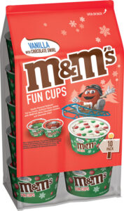 “We know that Americans enjoy ice cream all year round, not just during the warmer months, so we wanted to deliver something special to fans for the holidays,” said Jayesh Shah, marketing director at Mars Ice Cream. “This year, ice cream and M&M’s lovers alike can celebrate the season with the flavors they know and love, but now with an additional hint of excitement and festive joy with our Holiday Fun Cups.”