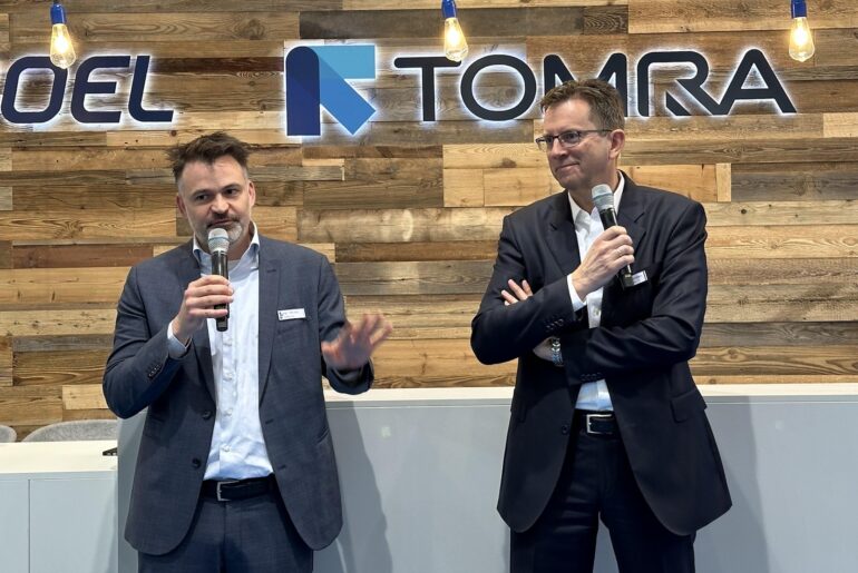 Tomra Food has introduced a more agile and focused organizational structure, showcased advanced sorting, grading and packing prowess, and launched three new AI-powered sorting and grading systems. The announcements were made at a February 9 press conference during the Fruit Logistica exhibition in Berlin, Germany, by Harald Henriksen (pictured above at right), executive vice president, and Karel Strubbe, EMEA regional director (seen at left).