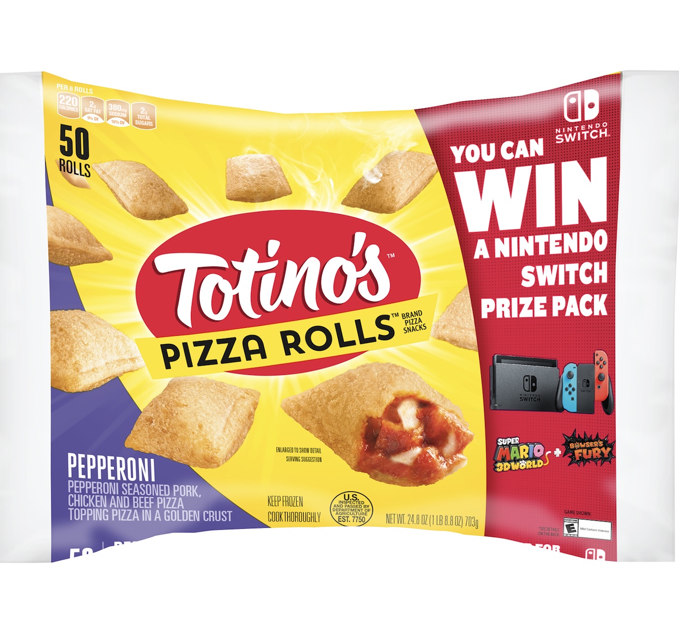 To enter the sweepstakes, shoppers just need to pick up one of the specially marked boxes of Totino’s Pizza Rolls or Party Pizza Packs at Walmart (or visit https://www.totinos.com/nintendo) between May 1 and June 30. Grand prize winners will receive a Nintendo Switch prize pack, consisting of a Nintendo Switch system, three Nintendo Switch Pro Controller accessories, a download code for the digital version of the Super Mario 3D World + Bowser’s Fury game and a Nintendo Switch Online 12-Month Family Membership.