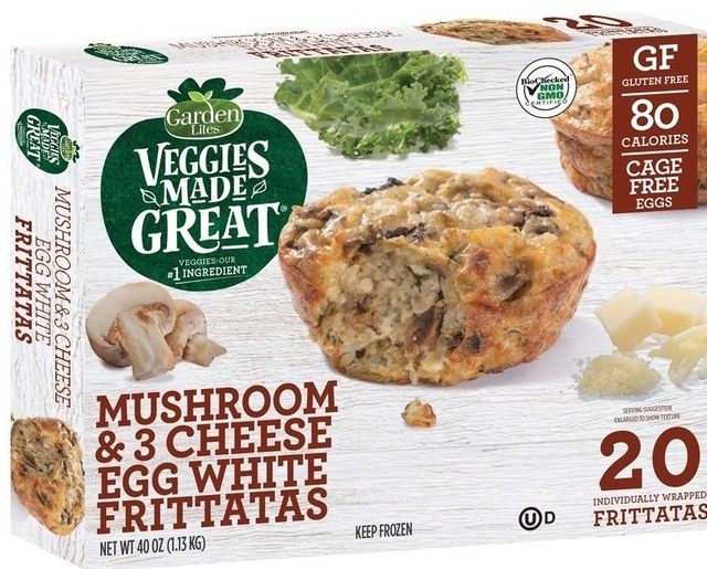 The Mushroom & 3 Cheese Egg White Frittatas recipe features a blend of mushrooms, potatoes, cauliflower, kale and cage free eggs. With four grams of protein and only 80 calories, it is promoted as “a great option for breakfast on the go.”