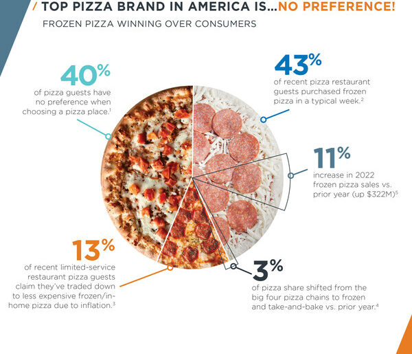 Americans love pizza and consume more than three billion a year. But according to research from Prosper Insights & Analytics, about 40% of consumers now have no preference when choosing a pizza place, and due to inflation, 13% of recent pizza restaurant guests are opting for frozen or non-restaurant pizza.