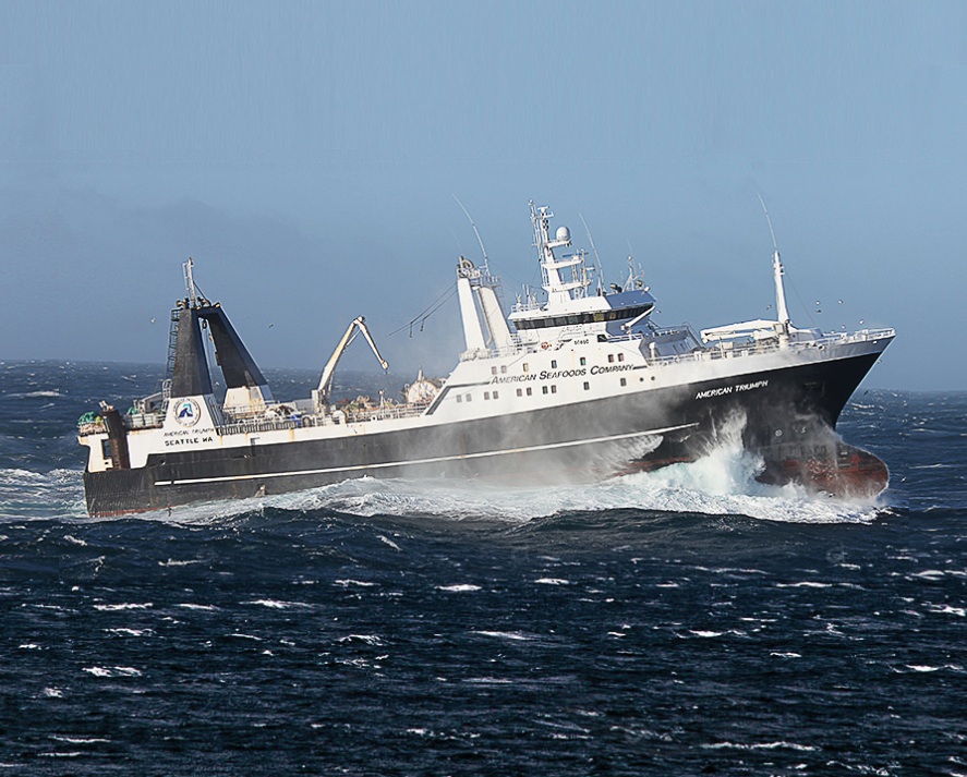 The American Triumph is ASG’s most powerful at-sea processor and boasts the largest frozen hold capacity of any of its two-level processing vessels. Registered in both the Pacific Whiting (hake) Conservation Cooperative and the Pollock Conservation Cooperative, it is also employed in the Wild Yellowfin Sole fisheries in Alaska.