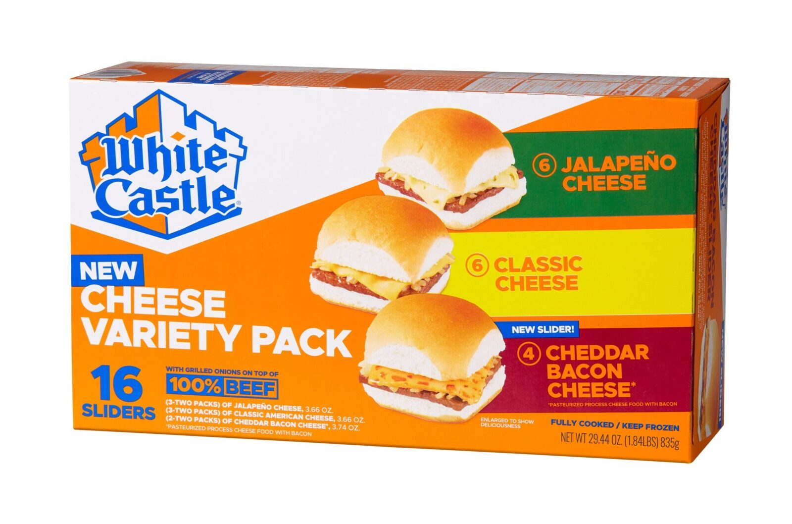 The latest offering is available exclusively in 16-count packs containing three varieties: four Cheddar Bacon Cheese Sliders, six Jalapeño Cheese Sliders and six Classic Cheese Sliders.