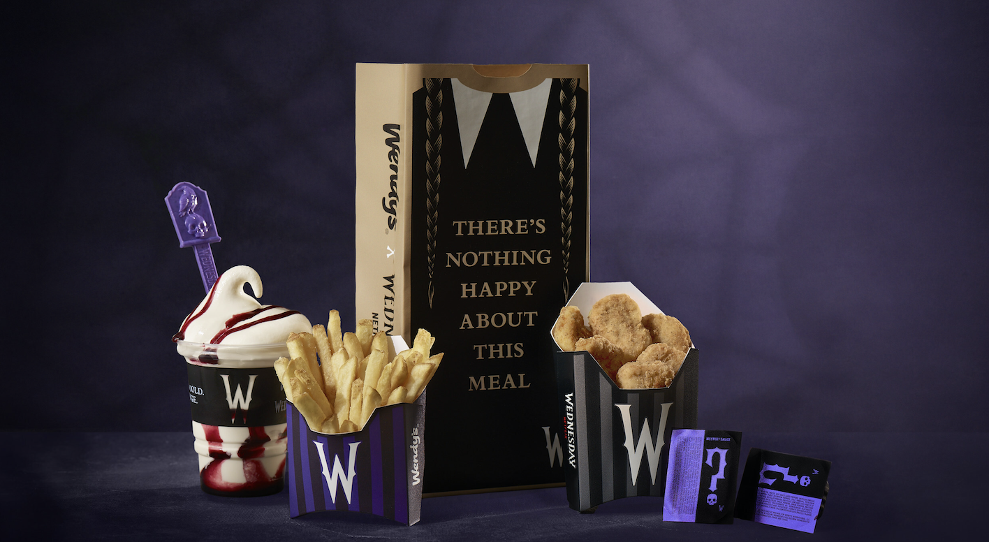 “Wendy’s and Wednesday are both cultural icons famous for challenging convention with wit and a bit of sass,” said Liz Geraghty, international chief marketing officer for Wendy’s. “This isn’t a typical collaboration, because not just any brand could scheme up a Meal of Misfortune with Wednesday Addams. But for a brand that’s proudly customer-obsessed and unapologetically bold.”
