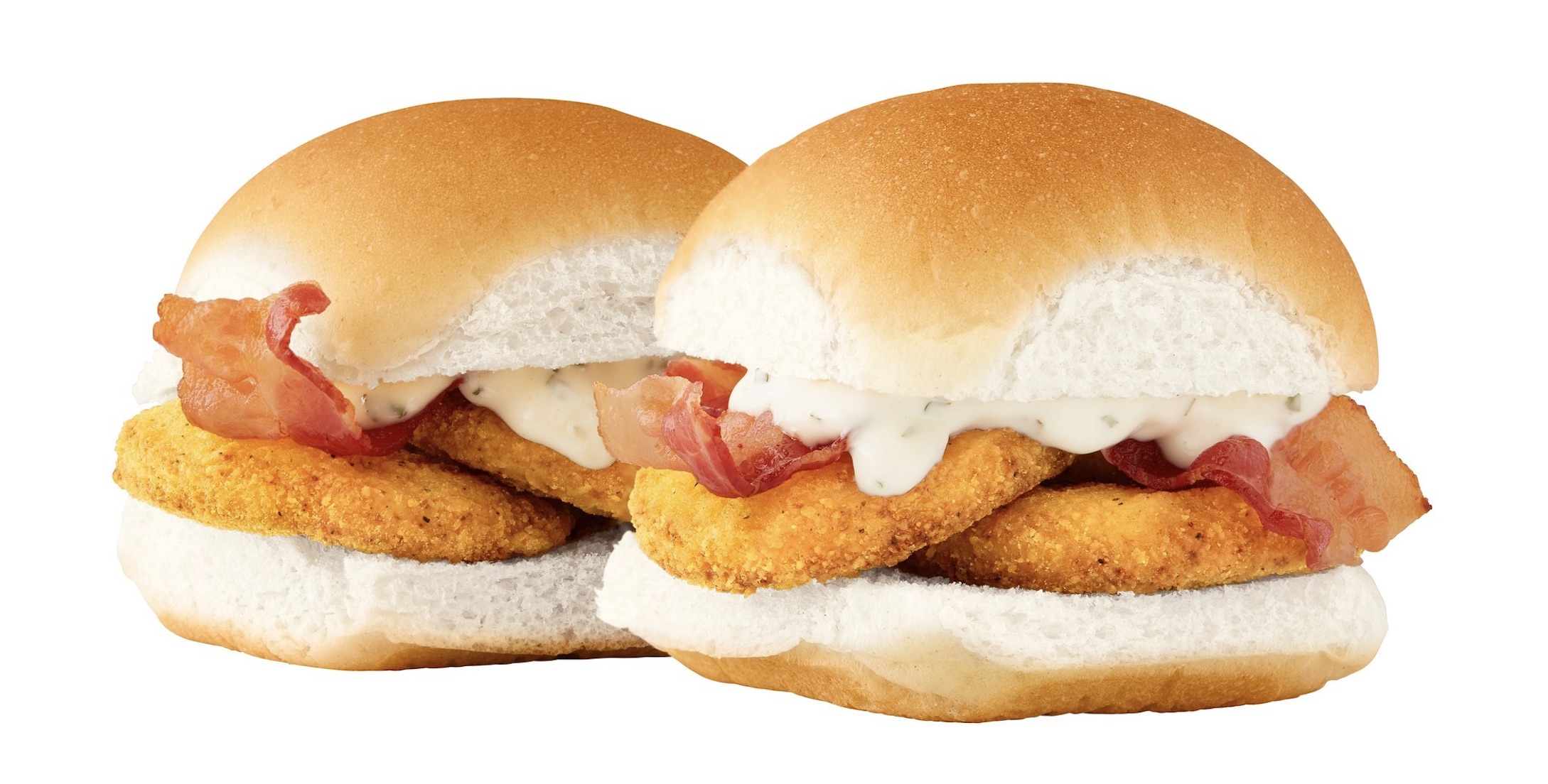 White Castle has introduced the Bacon Ranch Chicken Ring Slider, made with two all-white meat chicken rings, crispy bacon, and zesty and creamy Hidden Valley Original Ranch dressing. The price for two sliders served on signature buns is $3 at participating QSR restaurants in the United States.