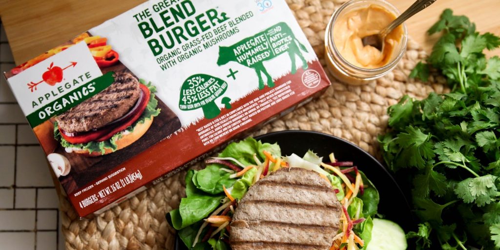 For the health-conscious at-home chef, adding plant-based ingredients to meatballs and burgers has an added bonus, as it’s budget-friendly. Major brands like Applegate are seeing if meat-eating consumers will swap a traditional beef burger for one with 30% plant-based ingredients, touting benefits of less fat and cholesterol when compared to USDA data for regular ground beef. Its Great Organic Blend Burger, distributed frozen in 454-gram four-packs, features organic turkey blended with organic mushrooms.
