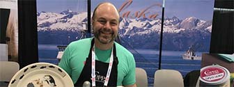 Marc Wheeler, as well as recipients of Coppa Candied Salmon Ice Cream samples, was all smiles at Seafood Expo North America in Boston. The product was a big hit at the Go Wild Alaska Style party as well as on the show floor.Taking her advice happily, I met Marc Wheeler, co-owns Juneau-based Coppa with his wife, Jessica Paris. The ice cream maker and coffee shop entrepreneur was dishing out samples of the 2017 Alaska Symphony of Seafood New Products Grand Prize-winning entry for passers-by to try and hopefully buy. His innovative ice cream flavor actually scooped three prizes in the recently held Alaska Fisheries Development Foundation (AFDF) contest for value-added products made from Alaska seafood, having also scored first-place finishes in the Foodservice and People’s Choice categories.